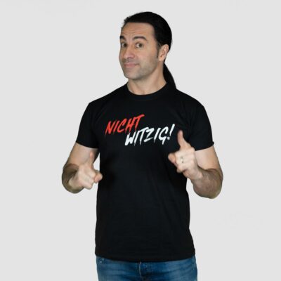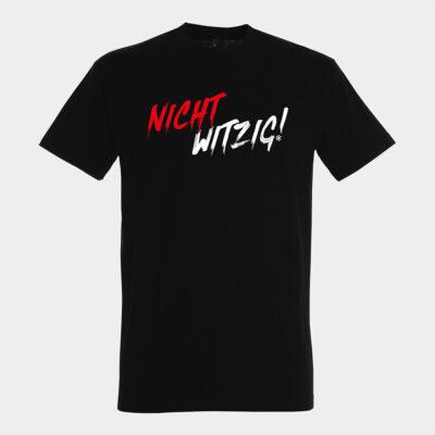 Vorderseite: Aufdruck NICHT WITZIG! in rot und weiß